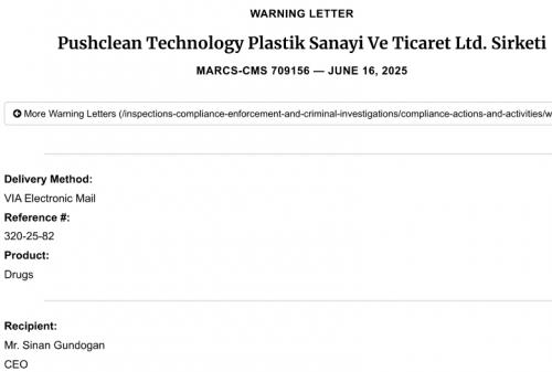 2025年6月24日,F(xiàn)DA公示了藥品審評中心(CDER)于2025年6月16日簽發(fā)的一封對土耳其Pushclean Technol... >> 更多